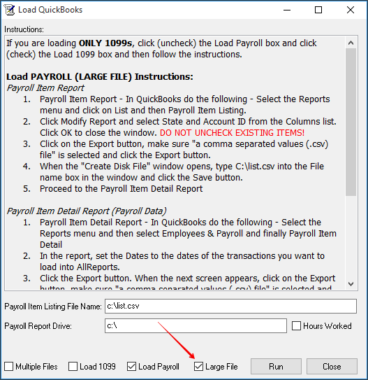 A-3: You will receive this message when you forget to remove the LEFT MARGIN from the Payroll Item Summary or 1099 report in QuickBooks.